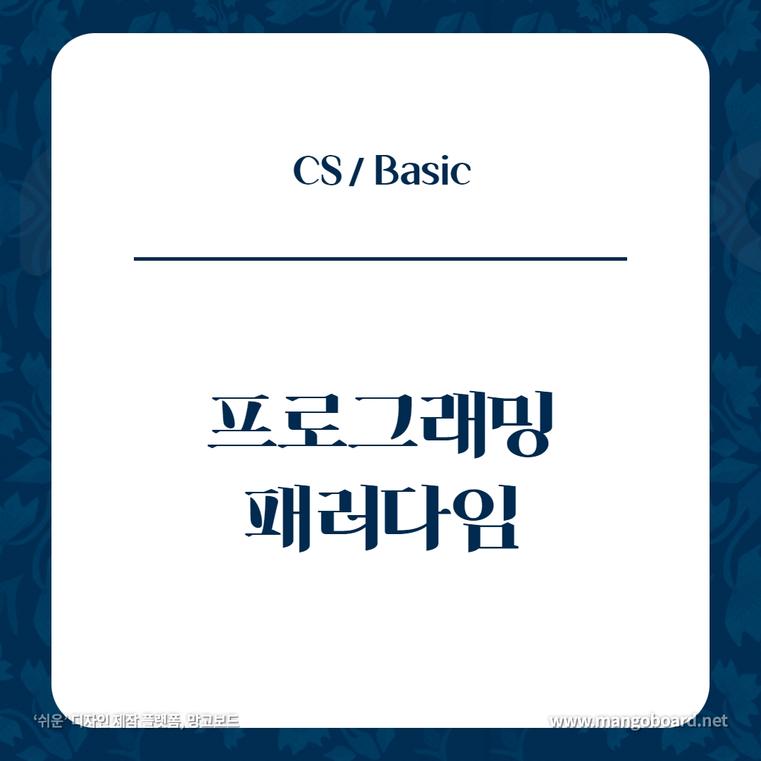 1. 프로그래밍 패러다임이란? 프로그래밍(Programming) : 하나 이상의 관련된 추상 알고리즘을 특정한 프로그래밍 언어를 이용해 구체적인 컴퓨터 프로그램으로 구현하는 기술을 의미 패러다임(paradigm) : 어떤 한 시대 사람들의 견해나 사고를 근본적으로 규정하고 있는 테두리로서의 인식의 체계, 또는 사물에 대한 이론적인 틀이나 체계를 의미 프로그래밍 패러다임 : 개발자가 프로그래밍을 위해 어떠한 '관점'을 가지고 개발을 할지에 대해서 결정을 하는데 도움을 주는 것을 의미 2. 프로그래밍 패러다임의 변화 등장 순서는 함수형 → 객체지향 → 절차적 이다. 성장 순서는 절차적 → 객체지향 → 함수형 이다. 3. 프로그래밍 패러다임의 종류 크게는 명령형 프로그래밍(Imperative Programmi..